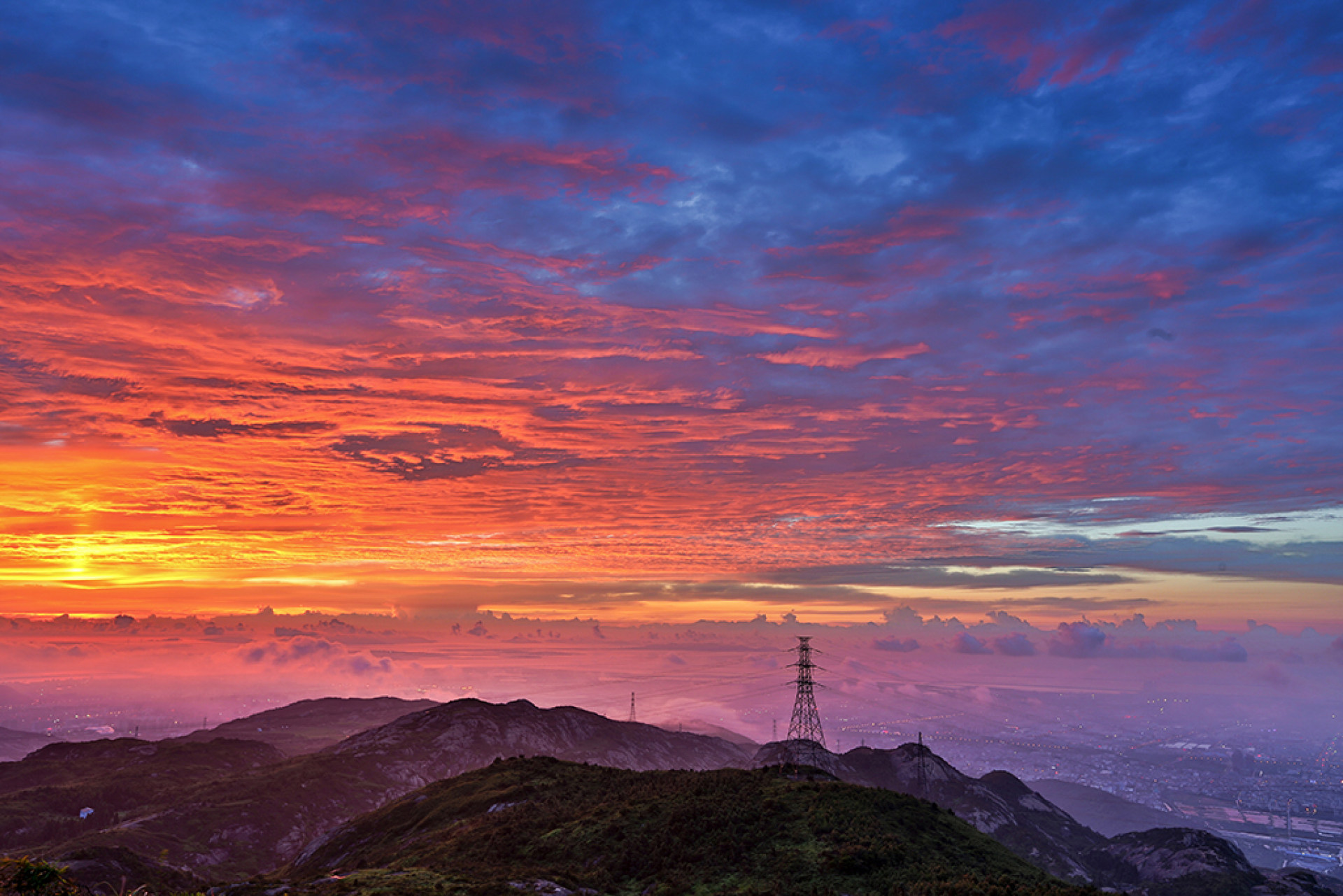2018年9月2日,拍摄于大罗山雷达站。清晨,站在此地,观东海,望着瓯越大地,彩霞满天,