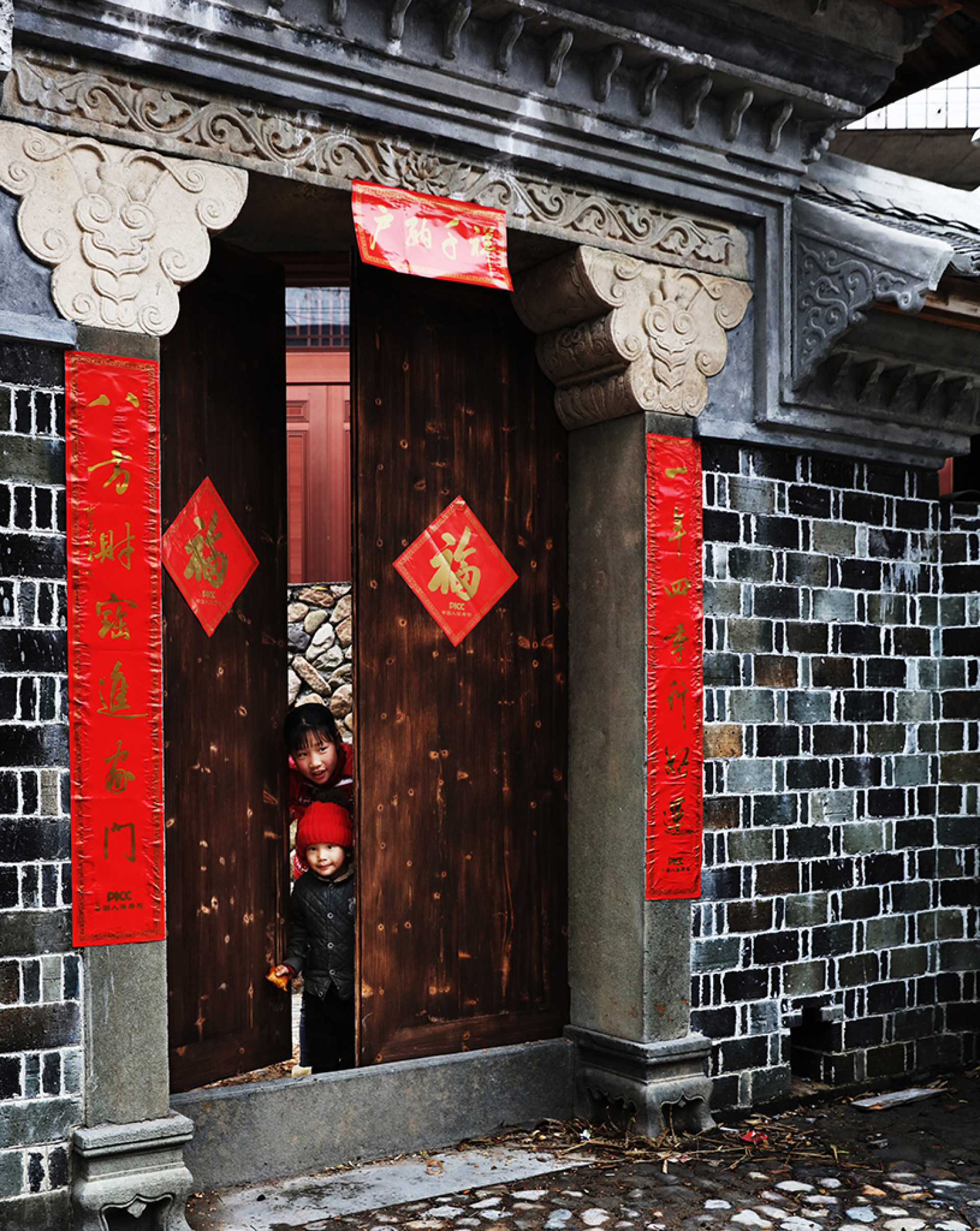 过年是农村小朋友最快乐的事,看看外面有什么新奇的事。