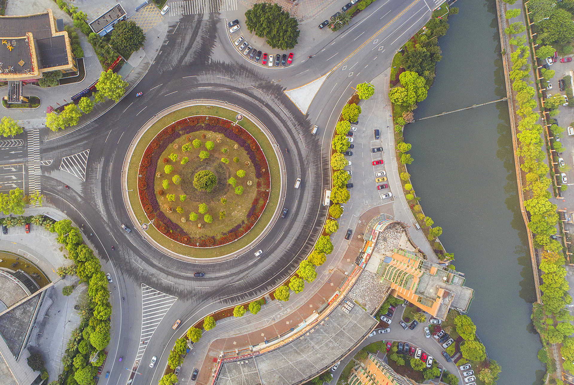 俯瞰城市交通转盘