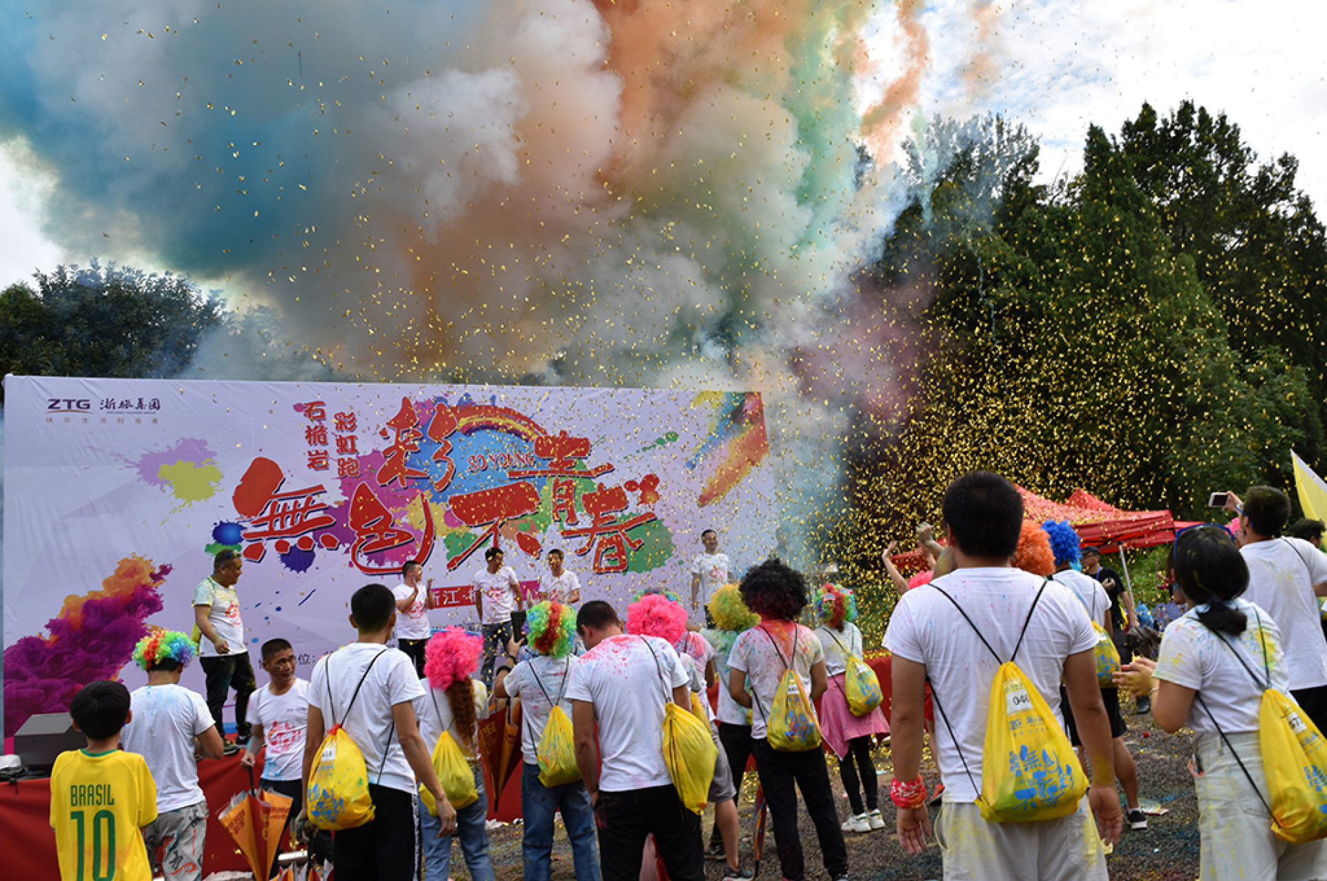 图为温州市楠溪江风景区管委会在石桅岩组织了这次“无色彩,不青春”彩虹跑活动,试图让安静恬雅的石桅岩景区跟上时代的节奏,动起来!这活动吸引了很多年轻人参加。他们挥洒的色彩,是可以食用的面粉和玉米粉,色彩炫丽,但也健康环保。活动取得圆满成功,游客反映良好!