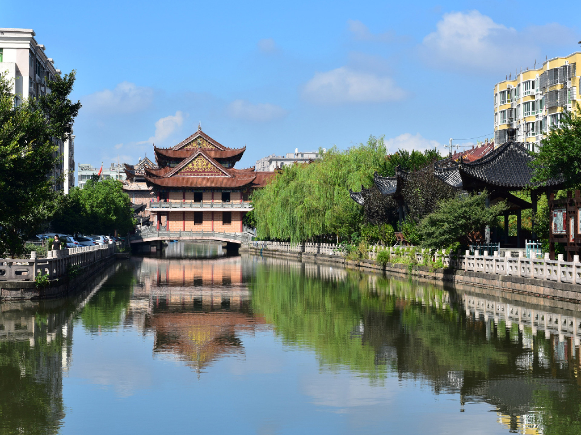 苍南县龙港镇号称中国第一农民城。是改革开放初期,政府组织,民间推动,摸着石头过河的改革试验田。 龙港镇重视环境保护,治水治污取得可喜成绩,荣获联合国开发署可持续发展试点镇称号。图为龙港镇公园一角。
