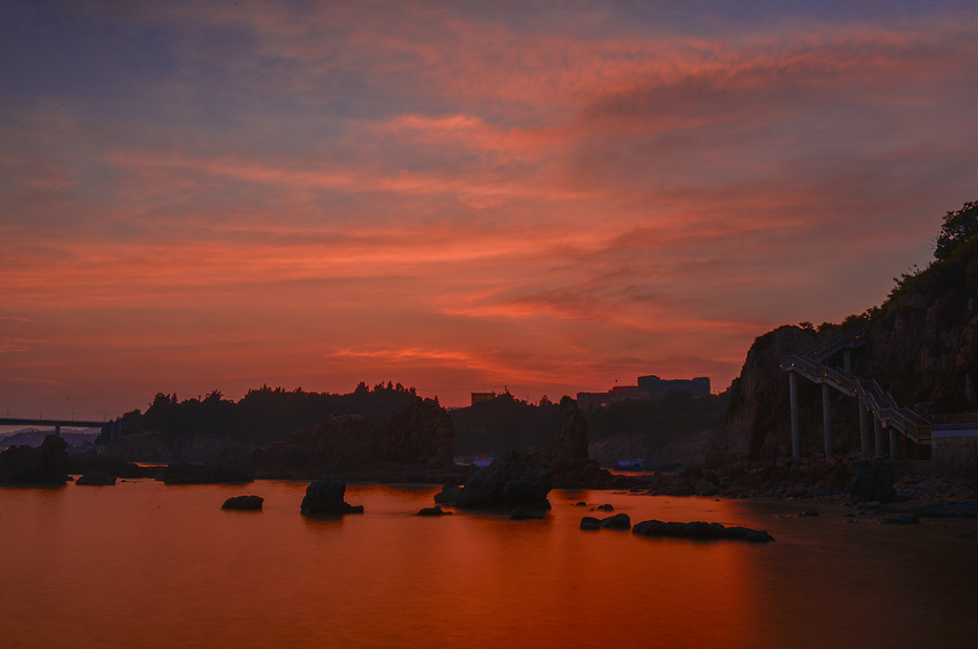 该村近年来一方面大力发展养殖业和捕捞业,稳定巩固渔业。另一方面引导产业结构调整,充分发挥本地自然资源和“省级渔家乐特色村”优势,大力发展服务业,成立了洞头县首家休闲渔业有限公司,发展渔家餐饮,渔家旅舍。图为晚霞下东岙村的美丽景色。