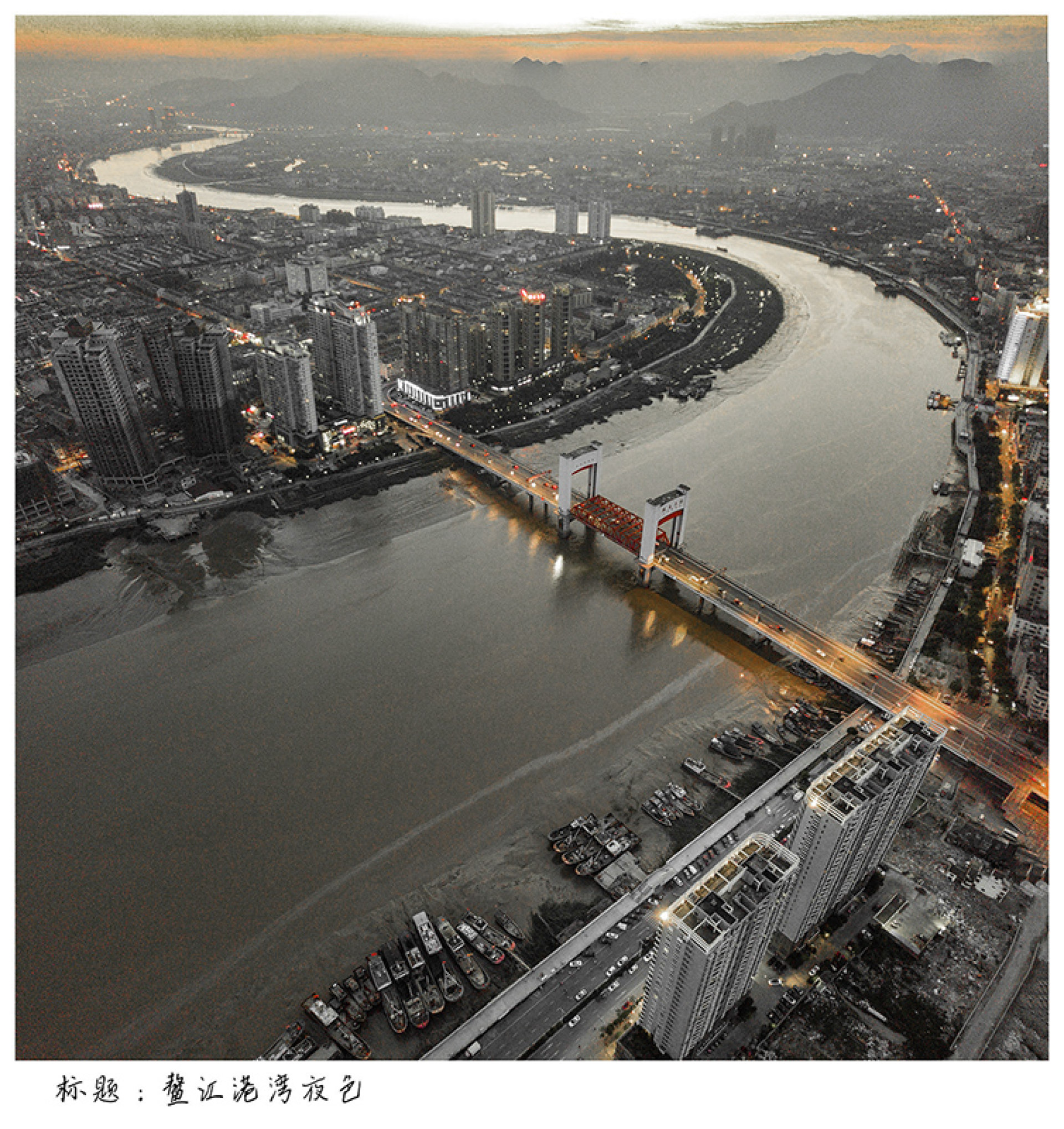 作品标题: 鳌江港湾夜色