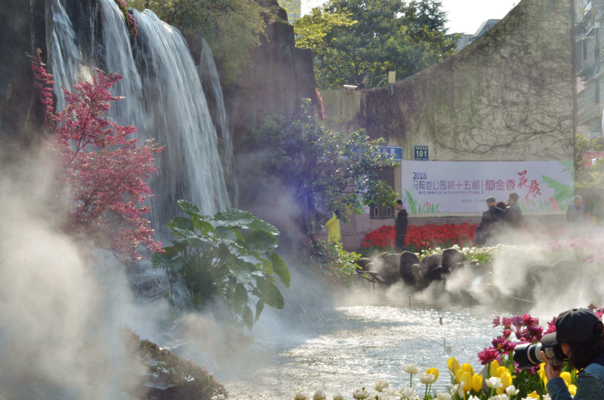 马鞍池公园大门口的人造瀑布