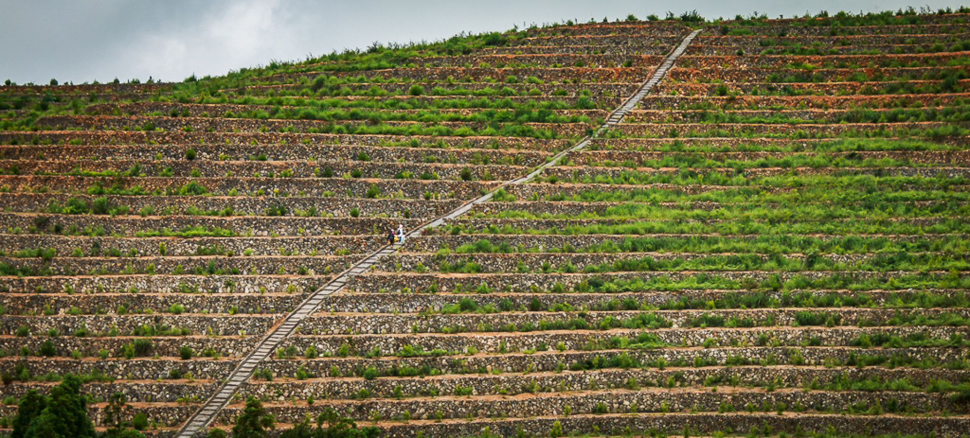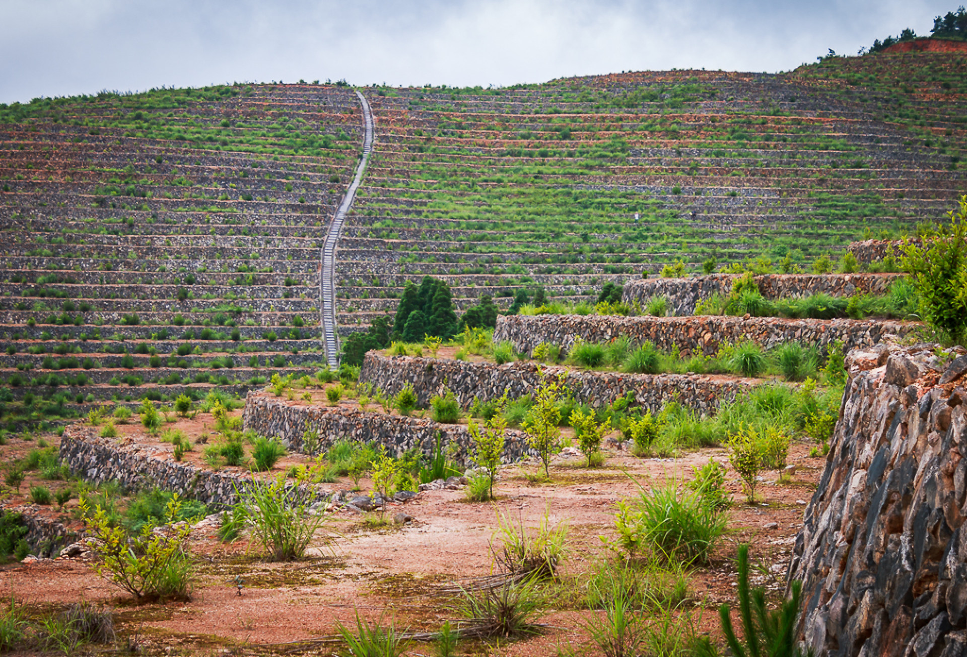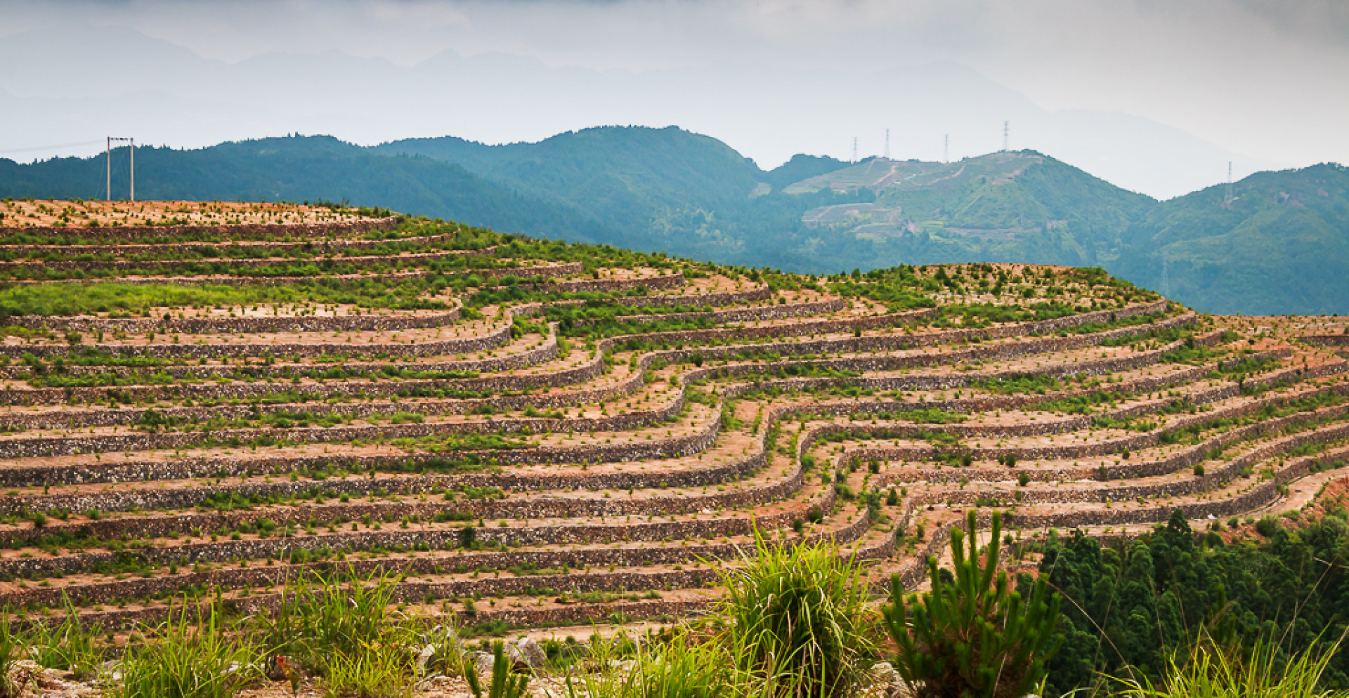 一有志青年回乡创业,耗时8年时间,将家乡高山上的3座荒山打造成千亩梯田,并种上油茶,红豆杉等经济作物,目前已初具规模,期待来年的绿树成荫.......