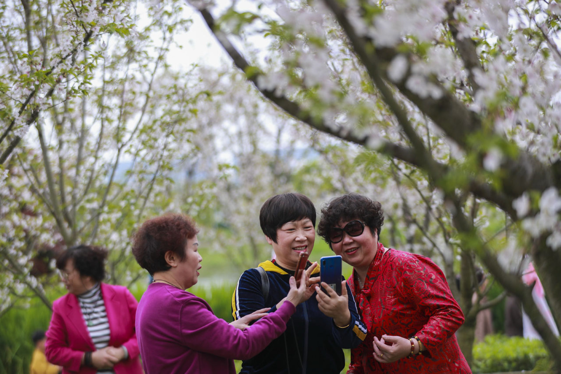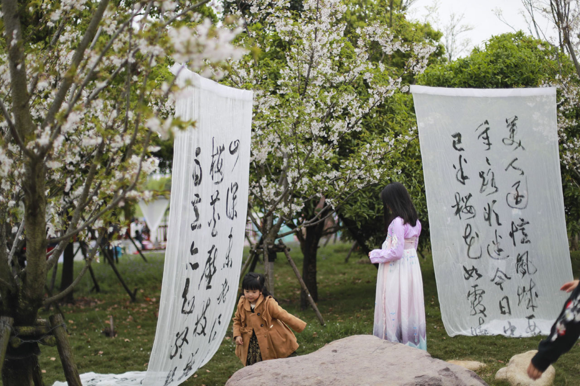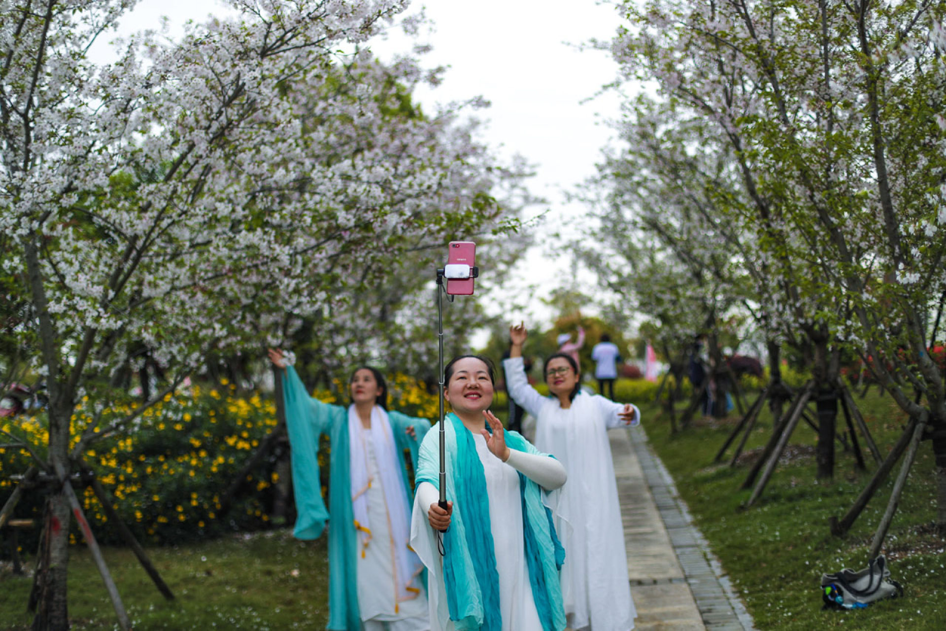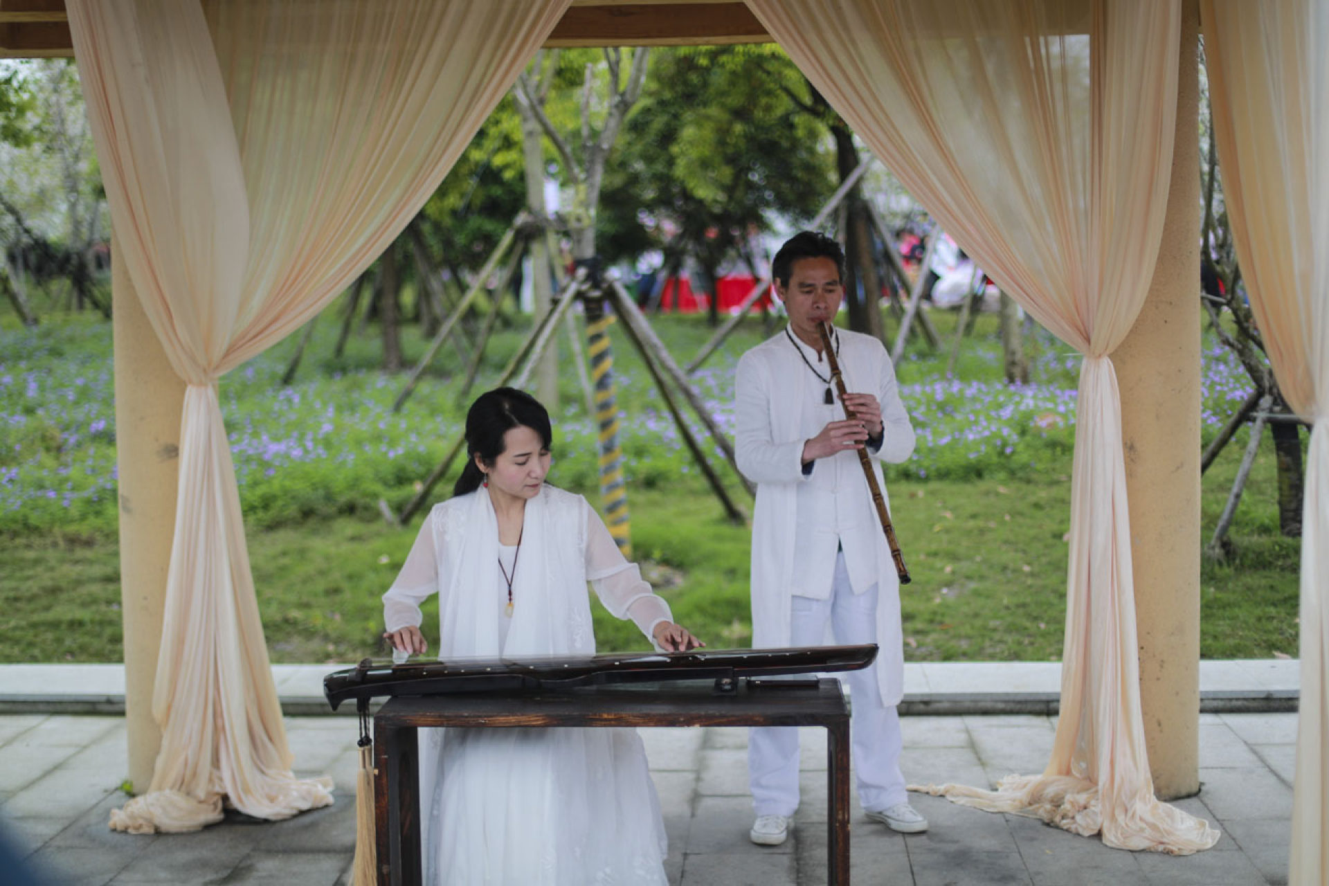 抚琴赏花不负春光