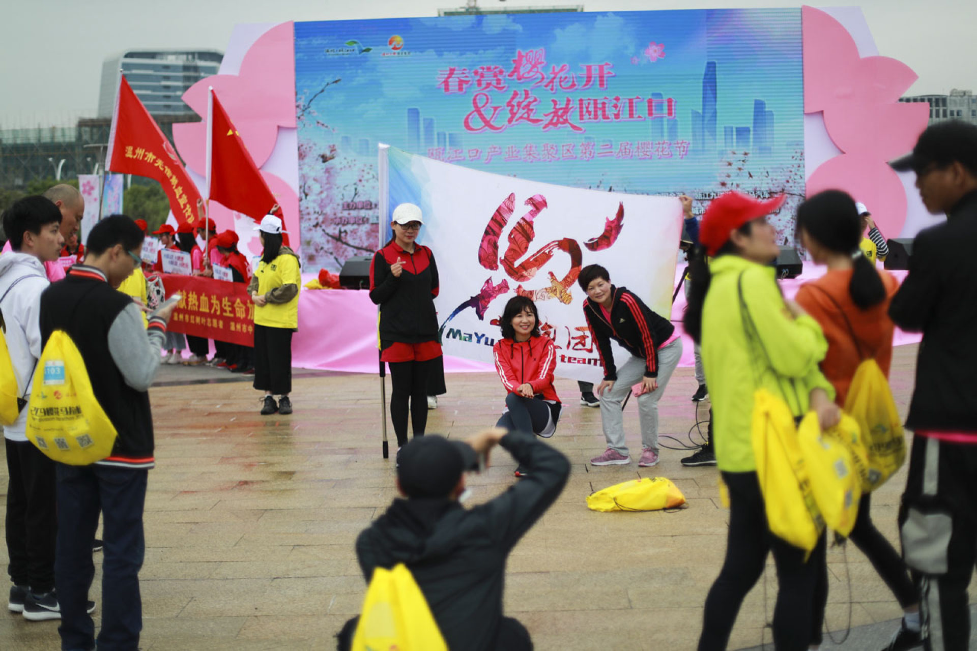 描述:十里樱花园游人如织