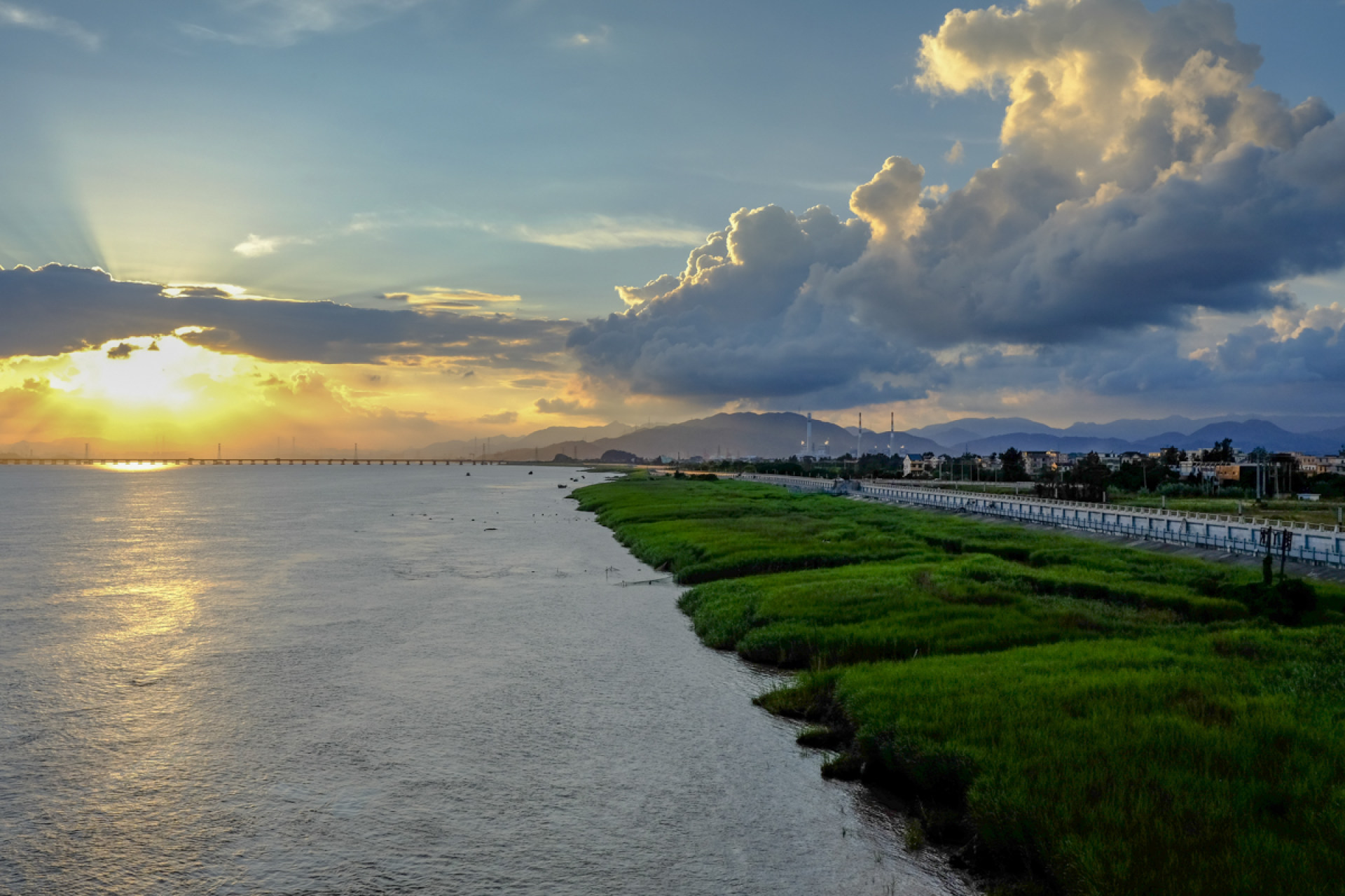 从灵昆大桥进入灵昆岛,在日落时,分外美丽
