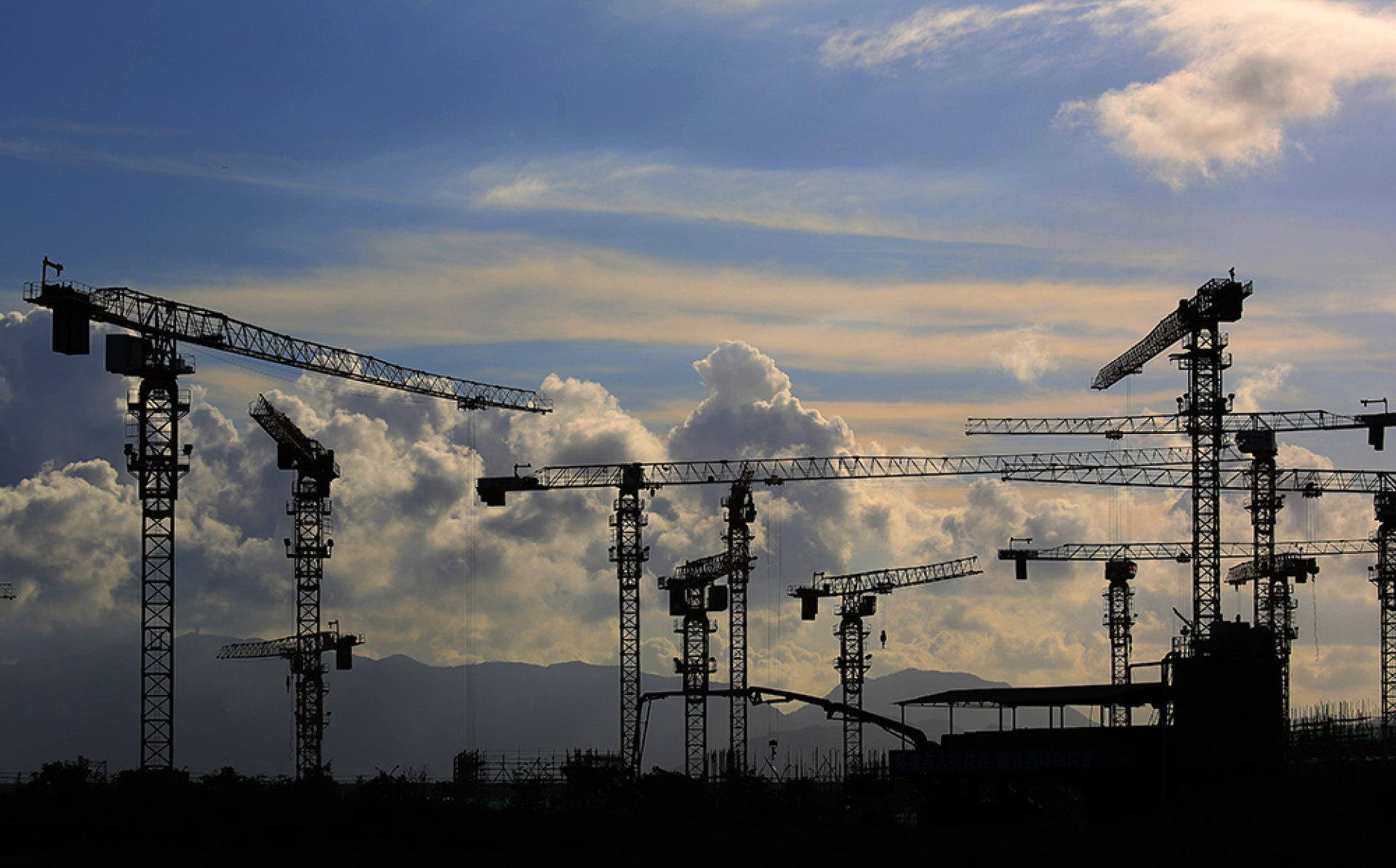 描述:瓯江口建设工地上的塔吊