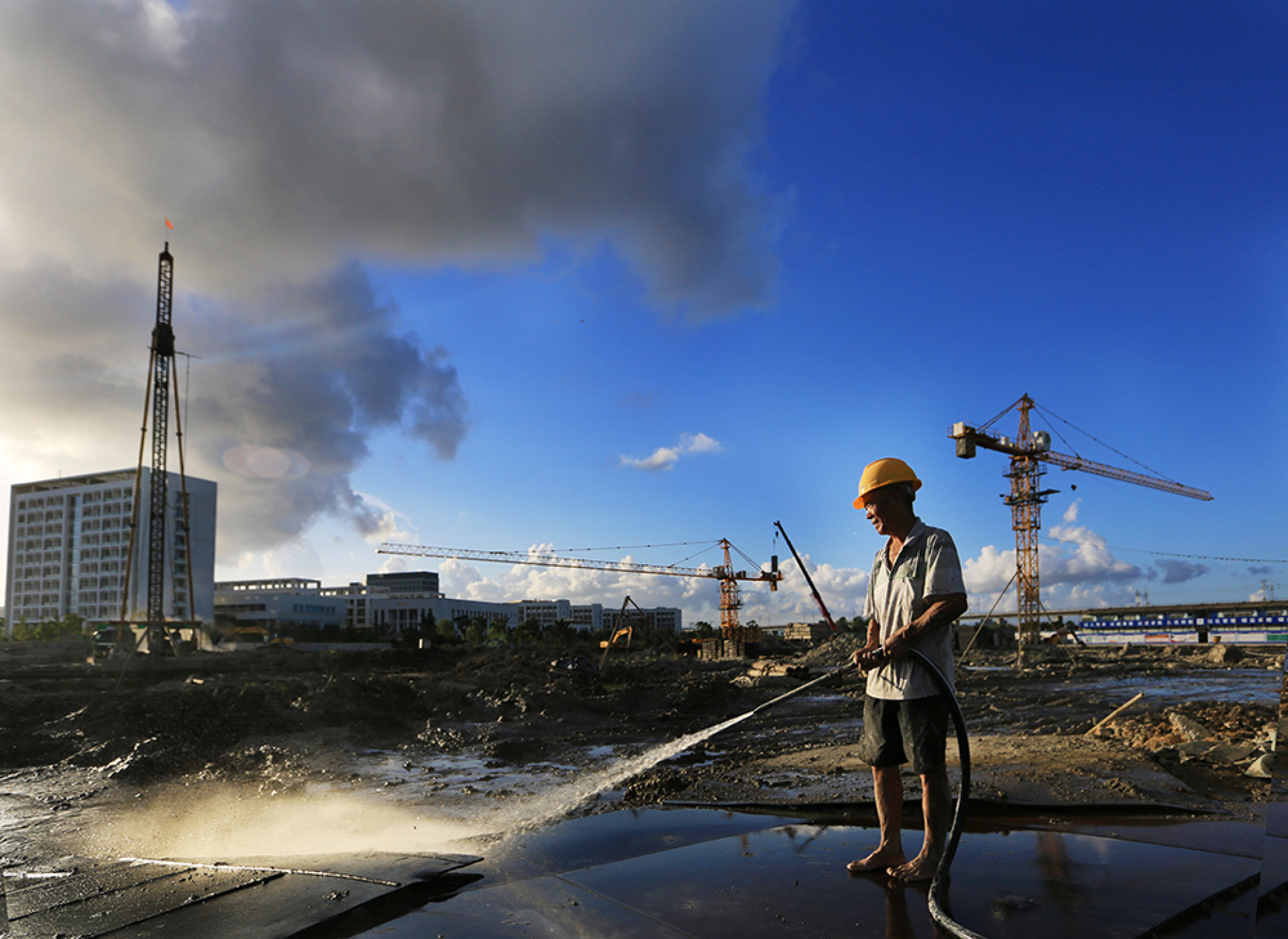 描述:瓯江口建设工地上的工人