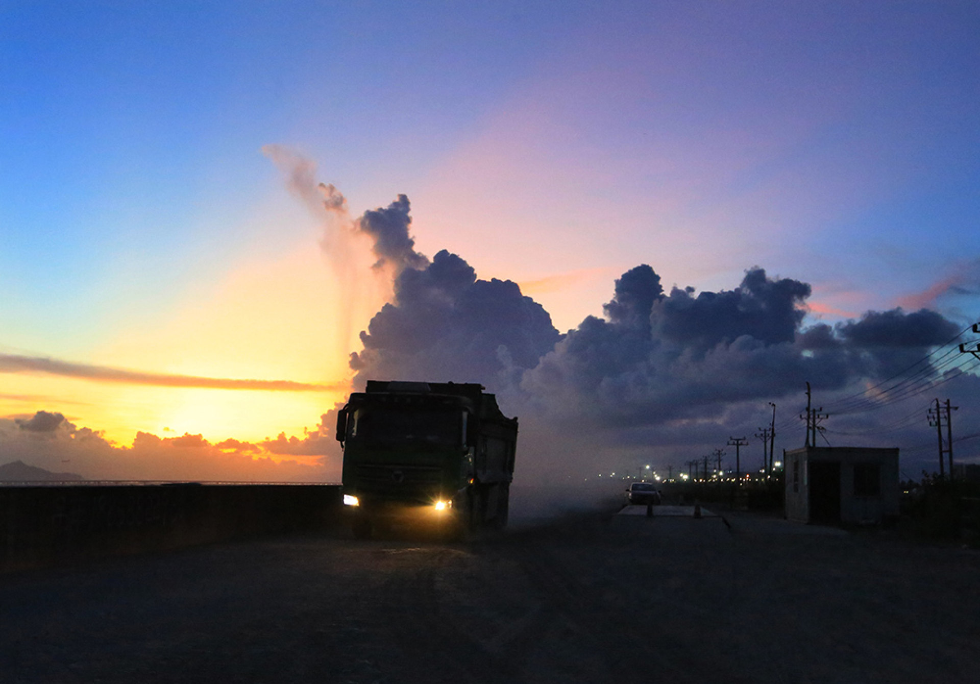 描述:瓯江口建设工地上的运输车