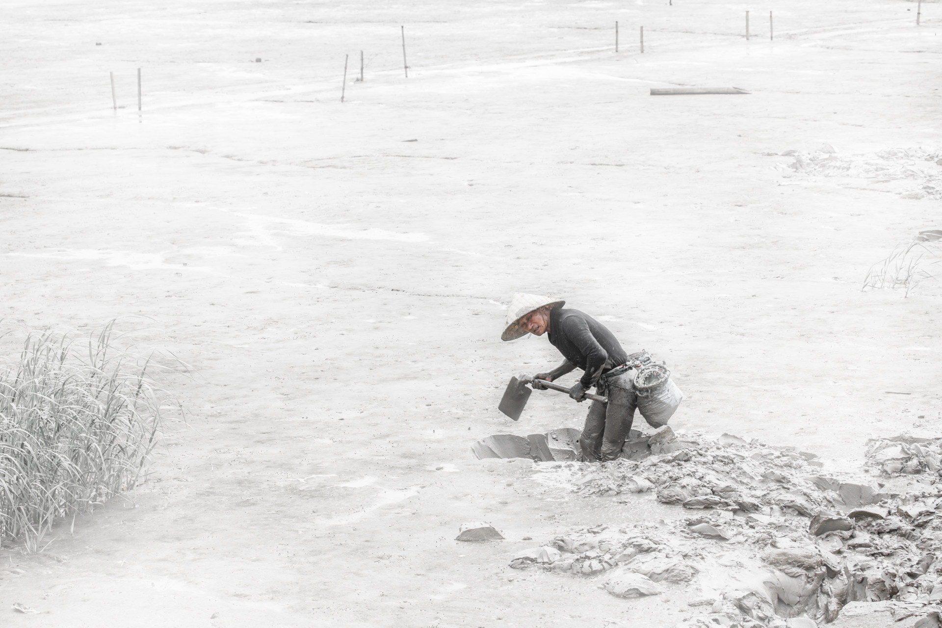 瓯江口滩涂辛苦劳作的人