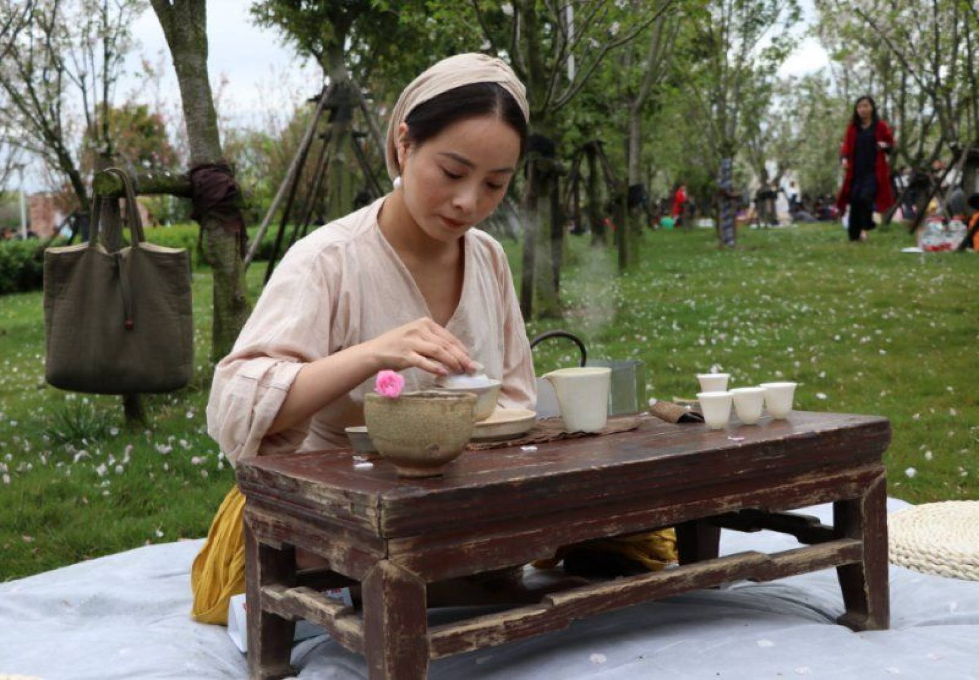 作品标题: 樱花树下品茶